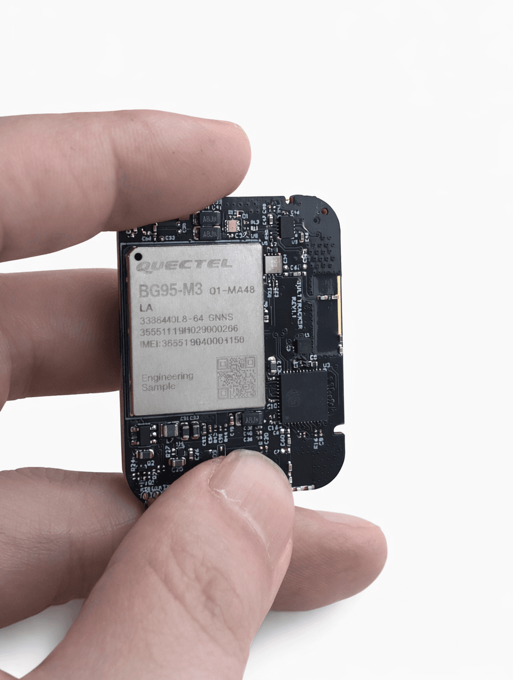 A highly integrated asset tracking platform designed within a 40mm by 30mm footprint, combining cellular connectivity, GNSS positioning, short range wireless, motion sensing, and battery management into a single embedded system.